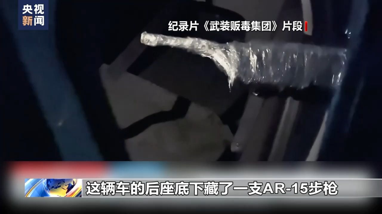紀(jì)錄片《武裝販毒集團(tuán)》片段:我剛從汽車(chē)油箱里取出這支用塑料布包著的9毫米口徑手槍?zhuān)€在往下淌汽油呢。這輛車(chē)的后座底下藏了一支AR-15步槍。