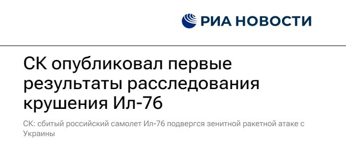 俄羅斯偵查委員會在聲明中表示,正在對機(jī)身碎片等物體進(jìn)行專業(yè)鑒定,同時詢問事件目擊者并繼續(xù)進(jìn)行現(xiàn)場調(diào)查。根據(jù)初步調(diào)查結(jié)果,可以確定伊爾-76運輸機(jī)遭到了來自烏克蘭境內(nèi)的防空導(dǎo)彈襲擊。
