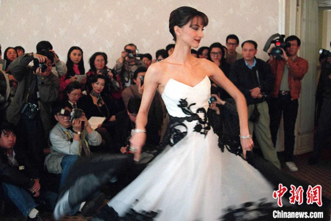 1996年,來(lái)自法國(guó)巴黎的時(shí)裝代表團(tuán)在北京飯店展示服裝。錢(qián)興強(qiáng) 攝