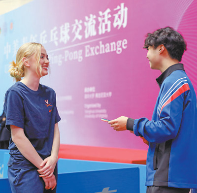 在中美建交45周年之際,北京市人民對(duì)外友好協(xié)會(huì)邀請(qǐng)美國(guó)弗吉尼亞大學(xué)代表團(tuán)訪問北京,并聯(lián)合北京市體育局共同舉辦以“重走乒乓路·一起向未來(lái)”為主題的中美青年乒乓球交流活動(dòng)。在清華大學(xué)舉行的這場(chǎng)乒乓球友誼賽,便是此次交流活動(dòng)的主要內(nèi)容之一。盡管是臨時(shí)組隊(duì),但乒乓球迅速化解了兩國(guó)大學(xué)生初次見面的拘謹(jǐn),讓他們很快熟絡(luò)起來(lái),整場(chǎng)比賽也在輕松愉快的氛圍中順利結(jié)束。賽后,兩國(guó)大學(xué)生又聚在一起自拍留念,互留聯(lián)系方式。