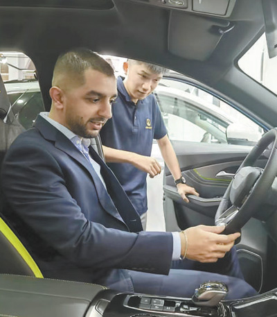 埃及首都開羅,熱鬧繁華的穆罕迪森區(qū),阿拉伯國家聯(lián)盟大街上車水馬龍。走進(jìn)一家汽車展銷店,一眾知名品牌汽車中,來自中國的新能源汽車格外引人注目。
