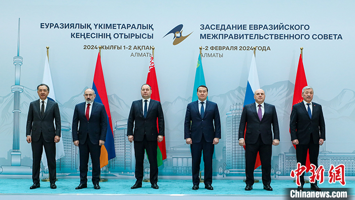 當?shù)貢r間2月2日,哈薩克斯坦阿拉木圖,歐亞政府間理事會會議舉行。 中新社發(fā) 哈薩克斯坦總理府網站供圖