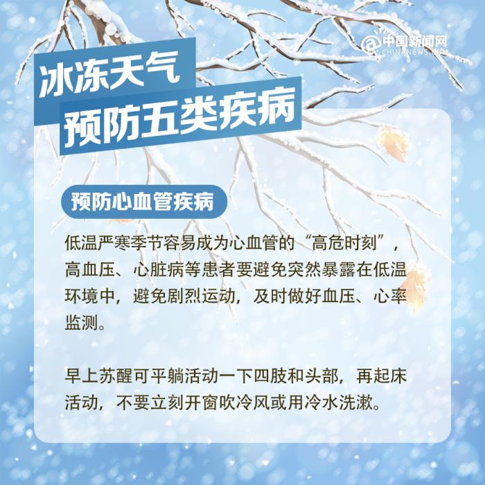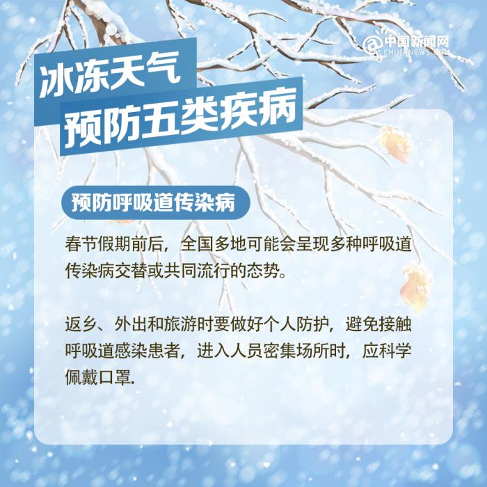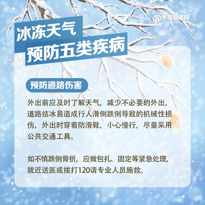 中新網(wǎng)北京2月7日電 近期我國中東部地區(qū)出現(xiàn)大范圍持續(xù)性低溫雨雪冰凍天氣過程,局部地區(qū)累計降雪量將接近或超過歷史同期,雨雪覆蓋范圍廣、持續(xù)時間長、凍雨范圍大,雨雪冰凍災(zāi)害風(fēng)險高,恰逢春節(jié)人員大規(guī)模流動,以下健康防護(hù)要點請查收。