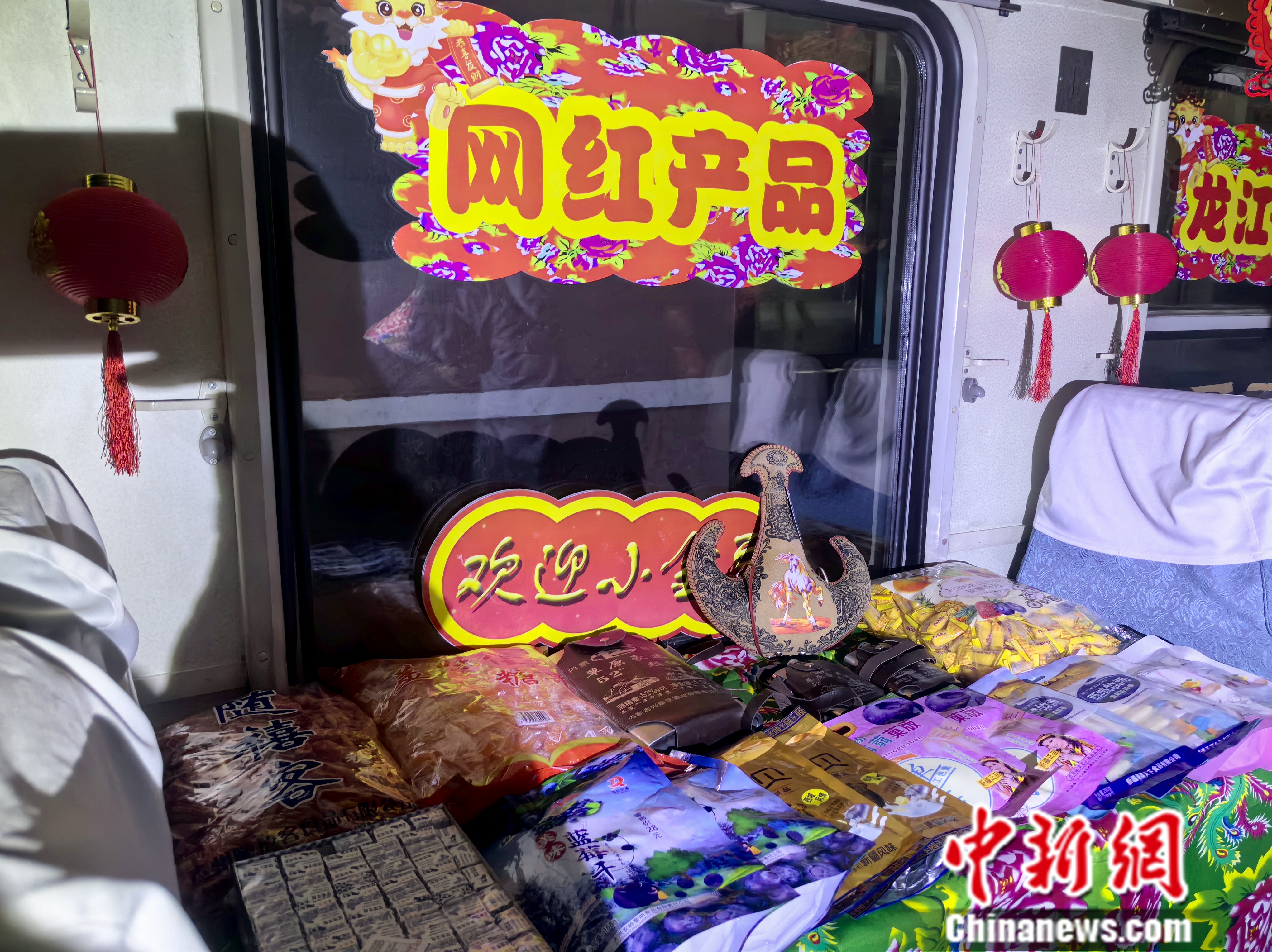 春節(jié)前,走進4045次列車車廂,映入眼簾的是火紅的燈籠、拉花,龍年春節(jié)氛圍一下被拉滿,行走的“列車大集”上更是擺滿了地道的東北年貨,讓人不禁感嘆:春運路上也可以買特色年貨了!