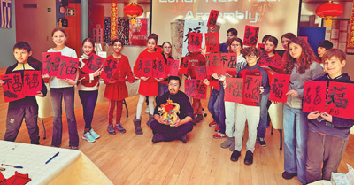 在招待會(huì)上,來賓們?cè)跁ㄕ古_(tái)學(xué)寫“?!弊趾痛郝?lián),在版畫展臺(tái)體驗(yàn)中國(guó)雕版印刷技藝,體驗(yàn)中國(guó)非遺和年俗互動(dòng)項(xiàng)目,了解中國(guó)傳統(tǒng)文化的悠久歷史和傳承發(fā)展等。