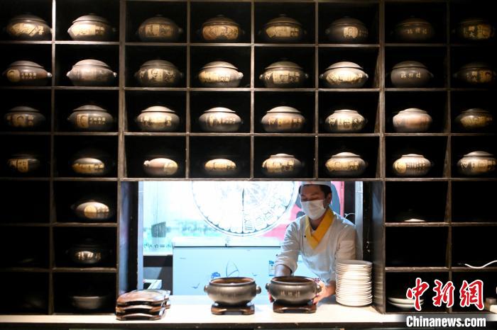 圖為昆明福照樓餐廳內(nèi)汽鍋雞被擺放在點(diǎn)菜臺“C位”?! ±罴螊?攝