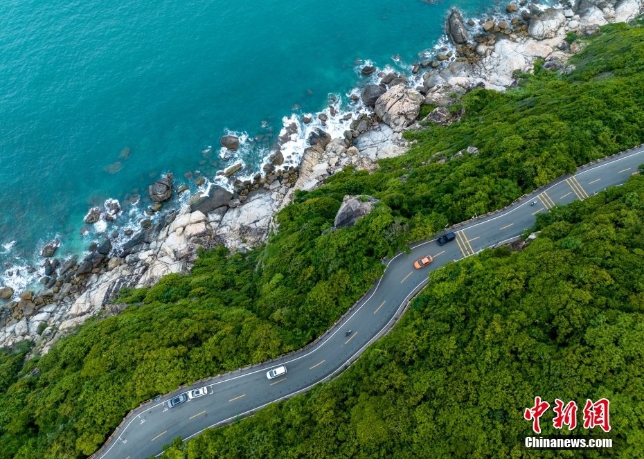 海南環(huán)島旅游公路三亞太陽(yáng)灣段。(無(wú)人機(jī)照片)。中新社記者 駱云飛 攝