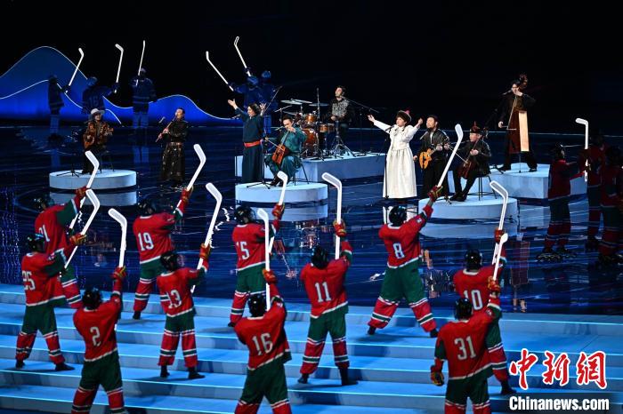 馬頭琴聲悠揚,小朋友手捧雪花燈,身著盛裝的演員表演起盅碗舞,歡迎遠道而來的客人。不以山海為遠,共赴冰雪之約,各民族像石榴籽一樣緊緊抱在一起,共同繪就中國冰雪運動的新章。