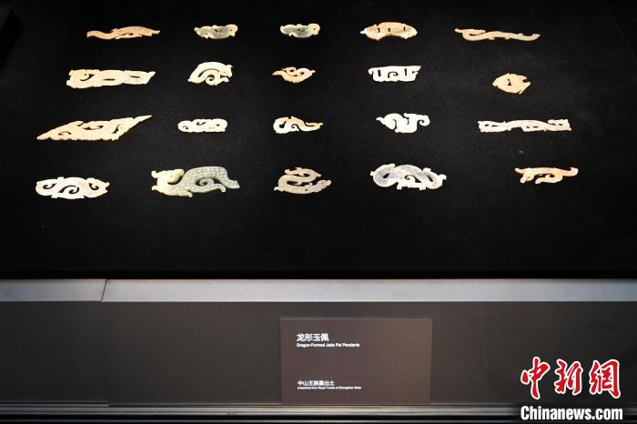 河北博物院展出的中山王厝墓出土的龍形玉佩,形態(tài)式樣各異。 中新社記者 翟羽佳 攝