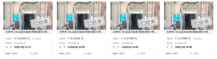據阿里資產·司法平臺顯示的信息,北京市門頭溝區(qū)東老店5號樓5層503號(2%份額)在幾天前結束了拍賣,最終以26166.6元的價格被拍下。