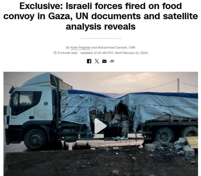 中新網(wǎng)2月21日電 美國有線電視新聞網(wǎng)(CNN)2月21日根據(jù)聯(lián)合國文件報道稱,以色列軍隊2月5日曾向加沙地帶中部一支聯(lián)合國運糧車隊開火,并最終阻止了車隊繼續(xù)前進。