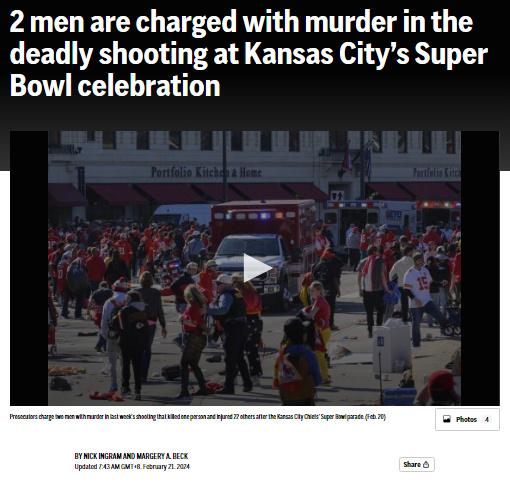 此前報(bào)道,美國(guó)密蘇里州堪薩斯城14日在舉行美國(guó)職業(yè)橄欖球大聯(lián)盟“超級(jí)碗”勝利游行時(shí)發(fā)生槍擊事件,造成至少1人死亡、20余人受傷。