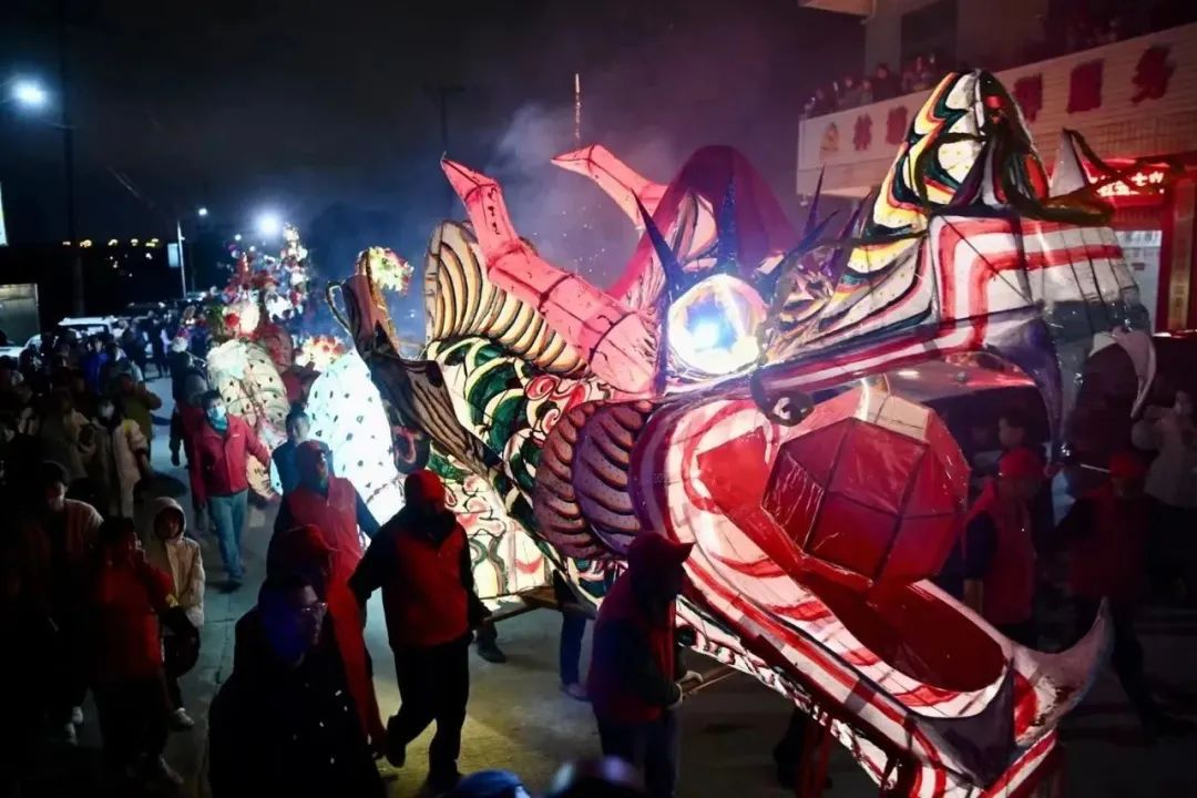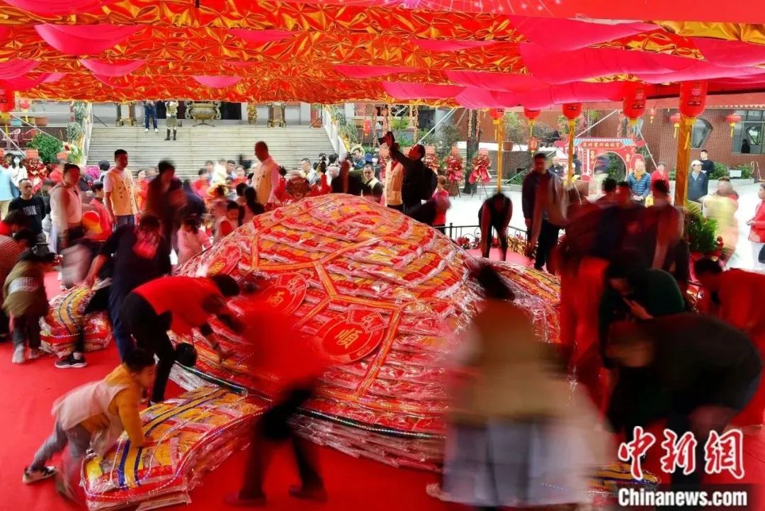 連城林坊游龍,村民們抬著色彩繽紛的大龍環(huán)著村道游走鬧新春。游大龍活動是林坊林氏家族傳統(tǒng)文化藝術活動的遺產(chǎn),有500多年歷史,意在祈求風調雨順、國泰民安。中新社記者 王東明 攝