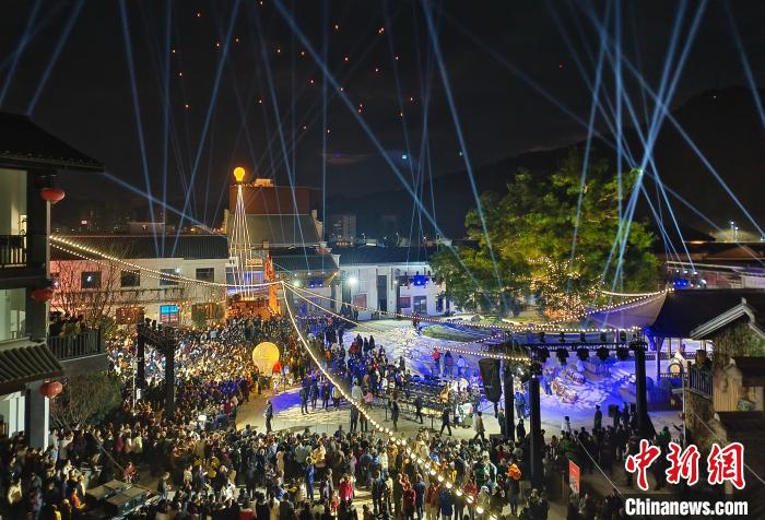 賴聲川歷時(shí)多年在家鄉(xiāng)江西會昌打造的會昌戲劇小鎮(zhèn)開幕,燈光秀現(xiàn)場人氣爆棚。(受訪者供圖)