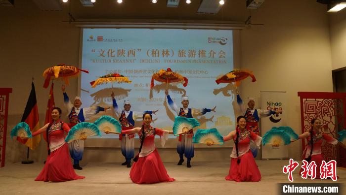 推介會(huì)現(xiàn)場(chǎng)還設(shè)置了陜西特色文創(chuàng)產(chǎn)品展示區(qū),展出農(nóng)民畫、剪紙、石雕、泥塑、棗木雕等非遺產(chǎn)品,讓與會(huì)嘉賓親身體驗(yàn)陜西的民間藝術(shù)和傳統(tǒng)技藝。來自陜西的藝術(shù)家們?yōu)閬碣e們表演了陜北大秧歌、腰鼓,演唱了《山那邊》《趕牲靈》《淚蛋蛋拋在沙蒿蒿林》《一對(duì)對(duì)鴛鴦水上漂》等極富特色的陜北民歌。推介會(huì)上來賓們交流探討陜西與德國(guó)在文化旅游領(lǐng)域的合作機(jī)遇和發(fā)展前景,氣氛熱烈。