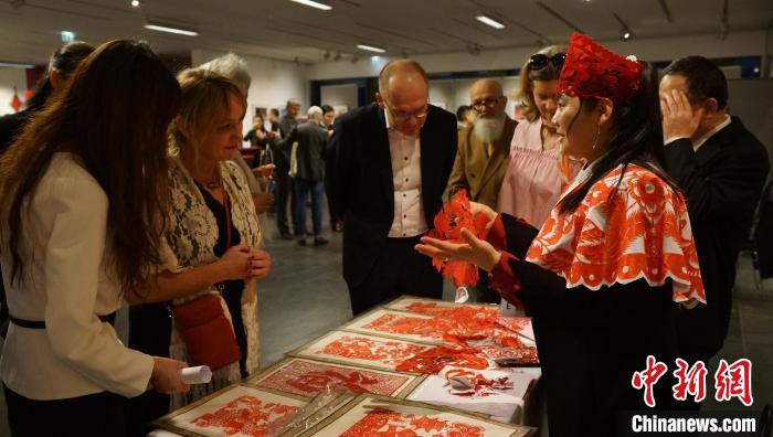 來賓欣賞剪紙非遺手工藝。柏林中國(guó)文化中心供圖