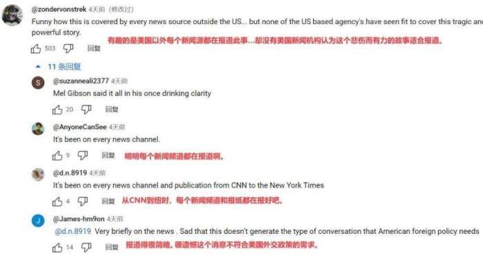 它還特意標(biāo)注了來(lái)源——紐約郵報(bào),它真的嚴(yán)謹(jǐn)我哭死,但是你們媒體之間這顆粒度沒(méi)對(duì)齊?。喝思以拿髅靼装讓?xiě)的“killing”“genocide”,怎么到你這就“fighting”了?可以說(shuō)是把避重就輕發(fā)揮到極致了。
