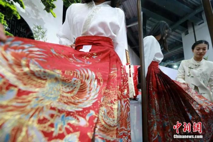 曹縣辰霏服飾有限公司作為線上和線下銷售為一體的漢服企業(yè),在節(jié)前就大約售出了1.6萬件馬面裙,這一數字是去年的3到4倍。據該公司總經理孟曉霞介紹,春節(jié)期間,基本每天都有客戶選購龍年拜年服,每天大約200人次至300人次的客流量,“印有龍鳳等圖案的原創(chuàng)紅色系馬面裙尤為受歡迎。”