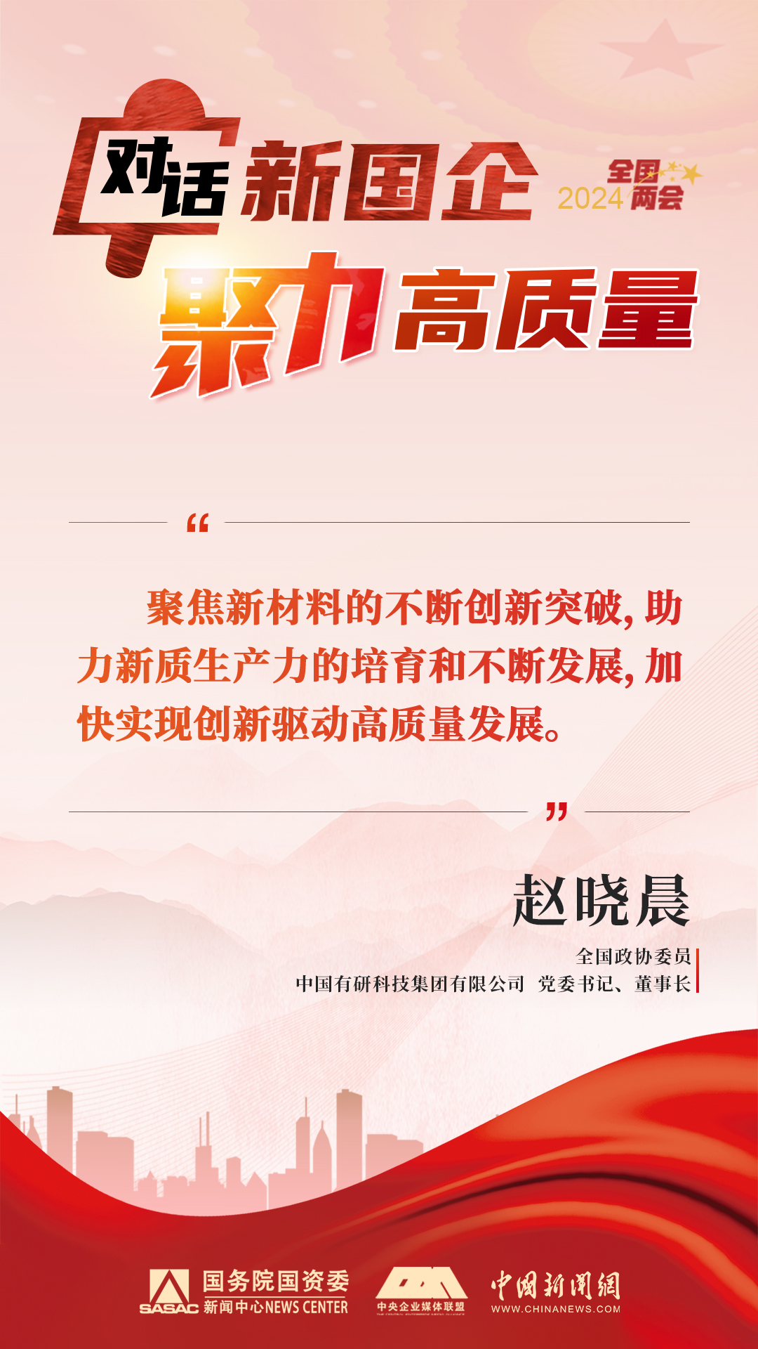 中新網(wǎng)北京3月6日電(記者 張尼) “我理解,科技創(chuàng)新是發(fā)展新質(zhì)生產(chǎn)力的核心要素;新材料突破是戰(zhàn)新產(chǎn)業(yè)、未來產(chǎn)業(yè),是新質(zhì)生產(chǎn)力孕育和發(fā)展的一個重要前提和基礎(chǔ)。” 全國政協(xié)委員,中國有研科技集團有限公司黨委書記、董事長趙曉晨在“對話新國企·聚力高質(zhì)量”系列融媒體訪談中表示,要以新興產(chǎn)業(yè)發(fā)展引領(lǐng)新質(zhì)生產(chǎn)力形成,培育企業(yè)發(fā)展新動能。