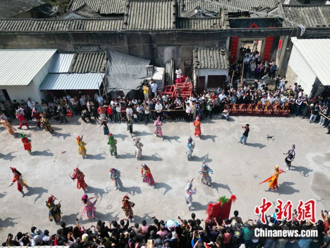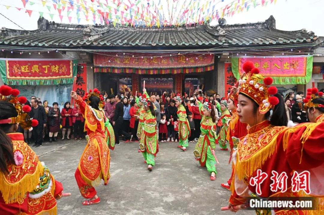 2024年2月20日,廣東潮州溪美寨村舉行傳統(tǒng)游神民俗活動,巡游隊(duì)伍的英歌舞表演吸引民眾觀看。陳楚紅 攝