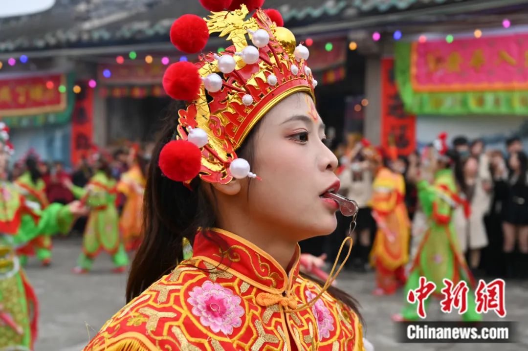2023年2月9日,廣東潮州,潮陽西門女子英歌隊(duì)亮相仙都鄉(xiāng)媽祖文化巡游活動。陳楚紅 攝
