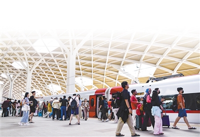 在中印尼共建“一帶一路”合作旗艦項(xiàng)目雅萬(wàn)高鐵雅加達(dá)哈利姆站,乘客來來往往。
