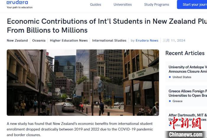 一項新調(diào)查顯示,中國仍是新西蘭的留學(xué)生主要來源國。圖片來源于EruderaNews網(wǎng)站報道截圖。