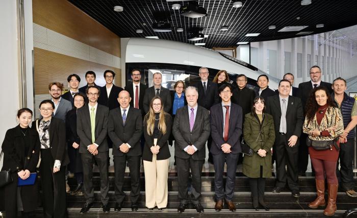 巴西教育訪(fǎng)華團(tuán)及北京交通大學(xué)代表在校內(nèi)國(guó)家重點(diǎn)實(shí)驗(yàn)室內(nèi)留影。 北京交通大學(xué) 供圖