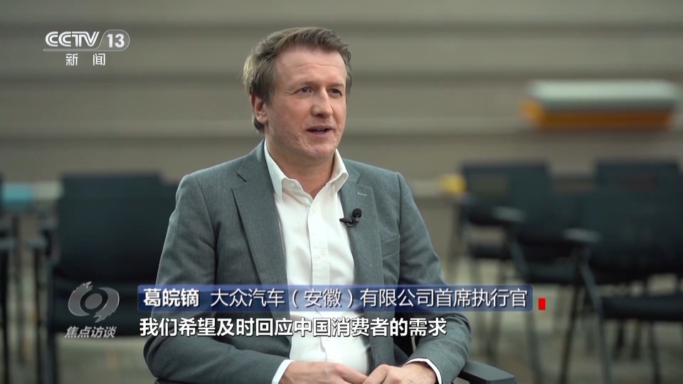 大眾汽車(安徽)有限公司首席執(zhí)行官 葛皖鏑:借助于這個研發(fā)中心,我們希望及時回應中國消費者的需求,這意味著一方面,我們要打造大眾汽車集團首個專屬中國市場的電動汽車平臺;另外一方面,我們希望將其開發(fā)周期縮短約30%,這樣才能夠跟上中國市場的步伐。