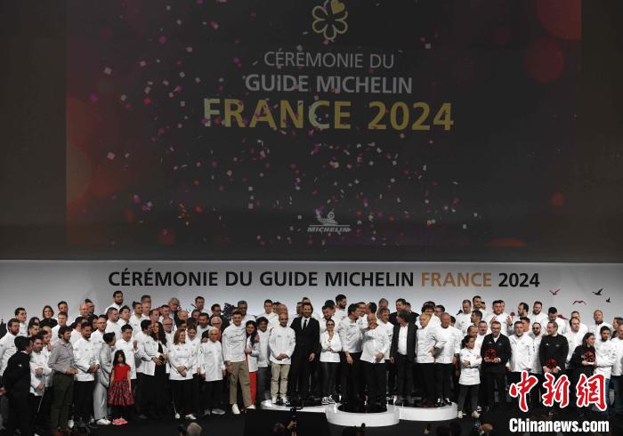 當(dāng)?shù)貢r間3月18日,2024年《米其林指南》法國版在法國中部城市圖爾出爐。2024年法國版指南新增62家星級餐館,這些餐館的經(jīng)營者在當(dāng)天舉行的儀式上集體合影。中新社記者 李洋 攝