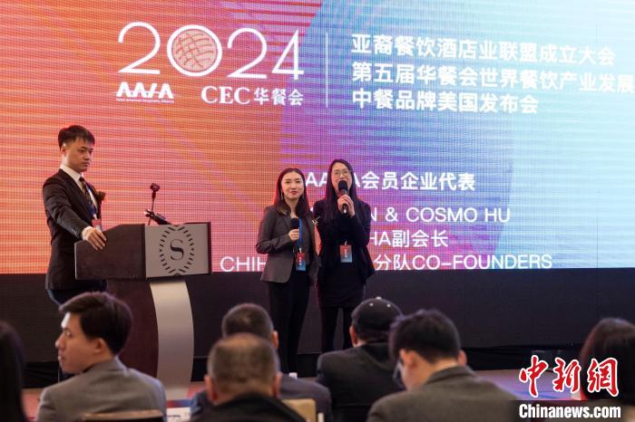 當(dāng)天,與亞裔餐飲酒店業(yè)聯(lián)盟成立大會同期舉行的還有第五屆華餐會世界餐飲產(chǎn)業(yè)發(fā)展大會暨中餐品牌美國發(fā)布會。活動現(xiàn)場,來自中美兩國逾400位餐飲界人士匯聚一堂,多名企業(yè)代表上臺分享經(jīng)驗,探討中餐品牌出海前景及本地亞裔餐飲行業(yè)未來發(fā)展。