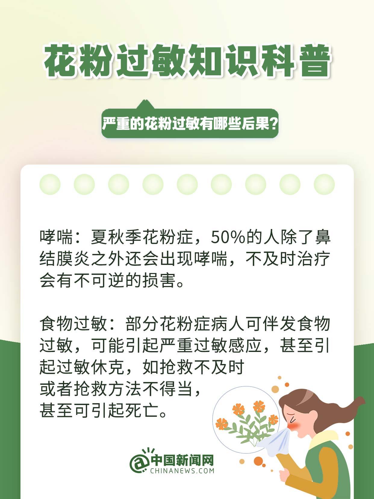 中新網(wǎng)3月19日電 萬物復蘇、草長鶯飛的春天,花粉過敏群體卻可能天天“一把鼻涕一把淚”?;ǚ圻^敏不是小事,若不及時治療或拖延不治,很容易惡化為慢性哮喘、鼻咽炎、結膜炎、肺炎等呼吸系統(tǒng)疾病。易過敏人群該如何防范?發(fā)生過敏如何治療?戳↓