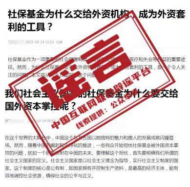 中新網(wǎng)3月18日電 據(jù)“互聯(lián)網(wǎng)聯(lián)合辟謠平臺”微信公眾號消息,近段時間以來,有少數(shù)網(wǎng)絡(luò)自媒體發(fā)布視頻稱,我國社會保險基金“幾乎全部交給外資機構(gòu)管理”,且被用于“買賣A股”,質(zhì)疑社?;鸪蔀椤巴赓Y套利的工具”。經(jīng)中國互聯(lián)網(wǎng)聯(lián)合辟謠平臺向有關(guān)主管部門核實查證,前述言論均為不實信息。
