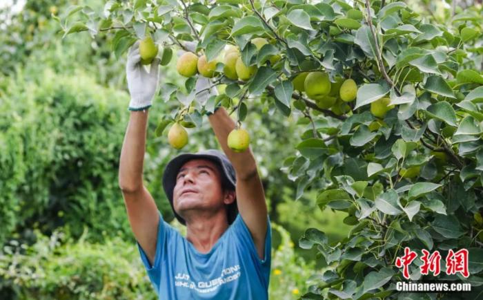 村民采摘庫爾勒香梨。 黃萬里 攝