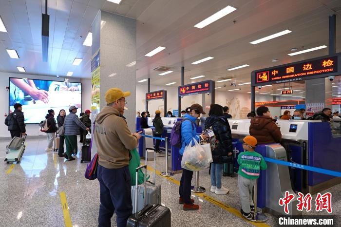 檢查員為旅游團(tuán)辦理查驗(yàn)手續(xù)。麻馨允 攝