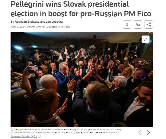 初步結(jié)果顯示:彼得·佩列格里尼贏得斯洛伐克總統(tǒng)選舉