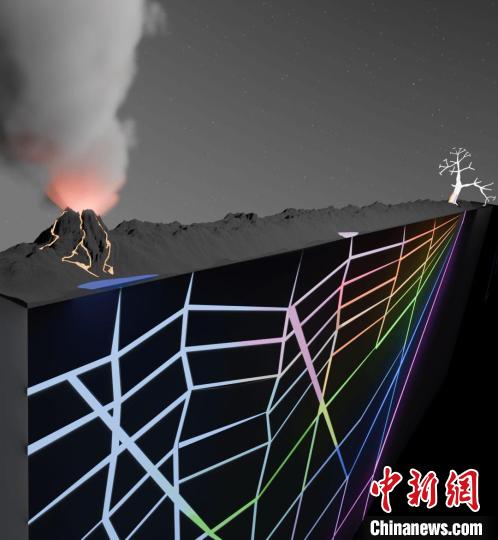 本次研究示意圖:由相互連接的巖石裂縫組成的地下網(wǎng)絡(luò),在熱流的推動下積累并富集了生命起源前的化合物,從而促進(jìn)了生命出現(xiàn)的早期化學(xué)過程(圖片來自Christof B. Mast)。施普林格·自然/供圖