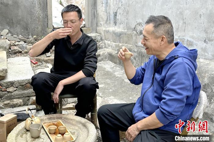 3月22日,葉世芳(右)和鄰里一起喝茶聊天。 朱春燕 攝