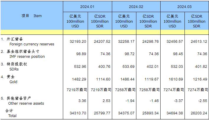 - 3月末中國外匯儲備32457億美元 環(huán)比升0.62%