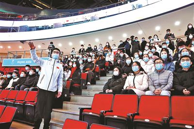 在現(xiàn)場,陳大鵬通過“由內(nèi)及外”“由下至上”的方式,將場館的競賽層、觀眾層、包廂層等流線以及各點位進(jìn)行了詳細(xì)的講解,并以“你需要知道的25件事”為主題,為志愿者們講解了作為場館工作人員必須遵守的各項規(guī)章制度?!斑@25件事包括志愿者在場館工作的方方面面,既有場館日常管理、防疫規(guī)定,又有志愿者工作期間個人生活及行為規(guī)范、工作紀(jì)律和文明禮儀等?!标惔簌i說。