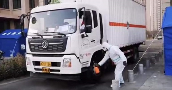 為防疫車輛進(jìn)行消殺。天津市紀(jì)委監(jiān)委供圖