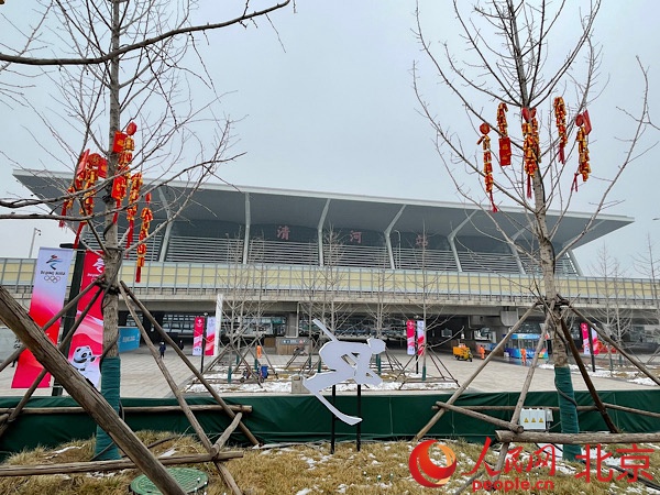 清河站外圍,冬奧及春節(jié)景觀布置一新。人民網(wǎng) 董兆瑞攝