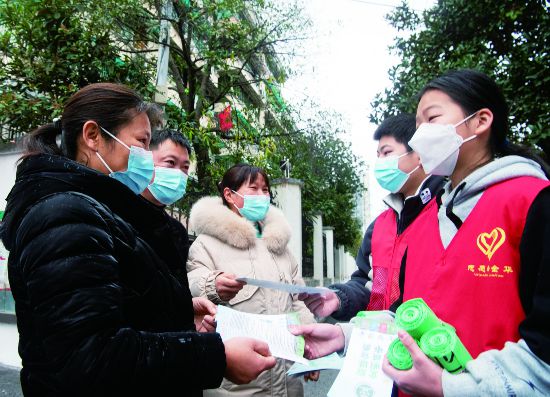 1月23日,在金華婺城區(qū)城西街道河盤橋社區(qū),租住在老肉聯(lián)宿舍等地的外來務(wù)工人員子女,趁著放寒假當(dāng)起垃圾分類宣傳員,給河盤橋社區(qū)居民分發(fā)宣傳冊(cè),講解《金華市生活垃圾分類管理?xiàng)l例》和“兩定四分”投放規(guī)定,協(xié)助社區(qū)向居民贈(zèng)送垃圾袋。(時(shí)寬兵)
