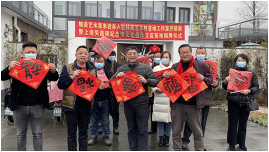 現(xiàn)場(chǎng),朱者赤還即興提筆,墨躍紅紙,以倒序筆畫(huà)寫(xiě)下福字,以此寄予“福到了”的新年祝福。作為入駐林家藝術(shù)村的第一批自由職業(yè)藝術(shù)家,朱者赤認(rèn)為,鄉(xiāng)村的自然恬淡能為藝術(shù)家的創(chuàng)作帶來(lái)許多靈感,而藝術(shù)賦能也會(huì)對(duì)美麗鄉(xiāng)村建設(shè)會(huì)起到推進(jìn)作用,他希望自己能在其中發(fā)揮作用,在不斷創(chuàng)作創(chuàng)新的同時(shí),讓更多藝術(shù)美走進(jìn)鄉(xiāng)村中去。