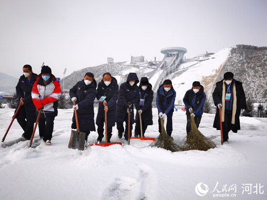 國家冬季兩項電力保障團(tuán)隊在暴雪中清理積雪,確保設(shè)備健康。 馬錚攝