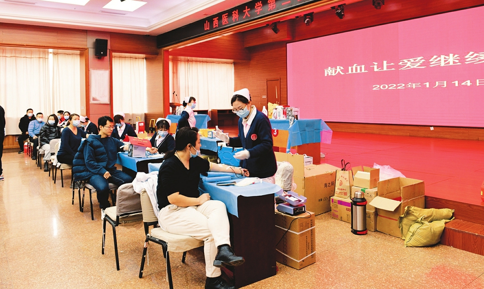 近日,山西醫(yī)科大學(xué)第二醫(yī)院一年一次的義務(wù)獻(xiàn)血“獻(xiàn)血讓愛繼續(xù)跳動(dòng)”公益活動(dòng)在該院影像樓進(jìn)行,醫(yī)務(wù)人員、職能部門和后勤工作人員共264人參與。大家依次填表、體檢、化驗(yàn)、采血,積極獻(xiàn)出一份愛心,以實(shí)際行動(dòng)踐行對(duì)生命的關(guān)愛,體現(xiàn)了強(qiáng)烈的社會(huì)責(zé)任感。(周慧芳 孟亮圖/文)