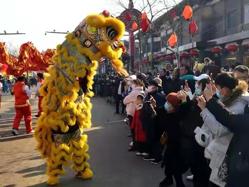 和陽門前,表演者身著節(jié)日的盛裝,以花車巡游、社火表演等形式沿和陽街、清遠街、清遠門一線前行,精彩的表演引來觀眾游客陣陣叫好,歡樂的氣氛一浪高過一浪;關(guān)帝廟前,戲臺上相聲、數(shù)來寶包袱不斷,戲臺下笑聲掌聲歡樂不停;純陽宮外,耍孩兒、晉劇演員盡顯風采,臺下觀眾看得沉醉;鼓樓東西街,《游龍戲鳳》《大明護衛(wèi)》等沉浸式古裝劇情演繹也吸引了眾多游人市民的參與圍觀。
