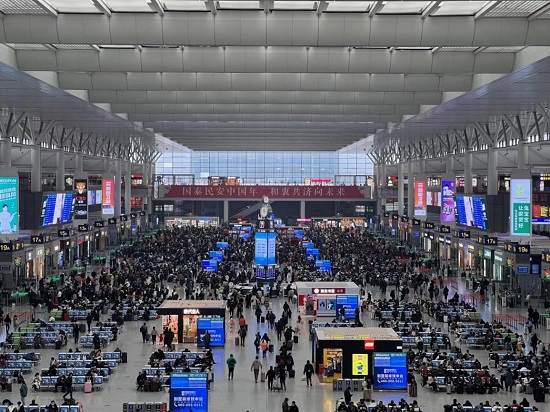 天寒地凍,但虹橋火車(chē)站溫暖如春。