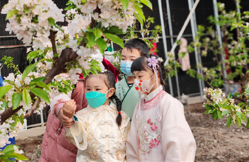 走進茶淀街道孟家瞿卩村種植戶于長晶的大棚,仿佛置身于花海之中。大棚外春寒料峭,大棚內(nèi)溫度適宜、花開正艷。櫻桃花盛開的美景吸引了不少游客前來打卡拍照,有的小游客為了拍出好看的照片,還特意穿來漢服來和櫻桃花合影拍照。農(nóng)戶搶抓農(nóng)時,辛勤勞作,確保今年的櫻桃豐產(chǎn)豐收。“櫻桃管理需要人勤快,不能偷懶?!庇陂L晶一邊忙著給櫻桃樹修剪枝條一邊說道。這幾天,她和家人每天都很忙碌,盡管勞累,但心里卻很高興。于長晶說:“我們今年借助科學(xué)管理,有的大棚里的櫻桃已經(jīng)結(jié)出果實。大概到3月下旬,大片櫻桃都成熟了,到時候游客就可以來采摘了?!?/p>