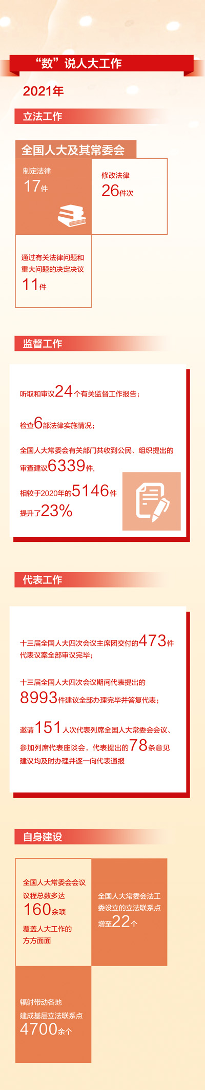 過去一年,一組組亮眼數(shù)據(jù)折射出我國立法工作取得的沉甸甸成績,體現(xiàn)立法工作堅持黨的領(lǐng)導(dǎo)、體現(xiàn)人民意志、回應(yīng)社會關(guān)切,堅持科學(xué)立法、民主立法、依法立法,充分發(fā)揮法治固根本穩(wěn)預(yù)期利長遠的保障作用。